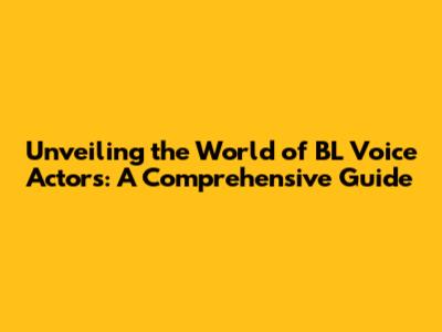 Unveiling The World Of BL Voice Actors: A Comprehensive Guide
