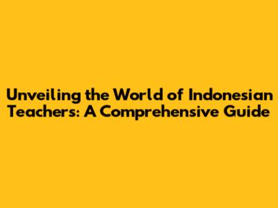 Unveiling The World Of Indonesian Teachers: A Comprehensive Guide