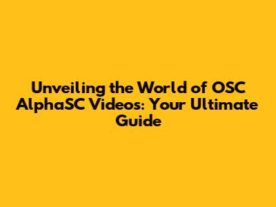 Unveiling The World Of OSC AlphaSC Videos: Your Ultimate Guide