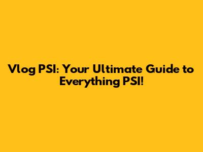 Vlog PSI: Your Ultimate Guide To Everything PSI!