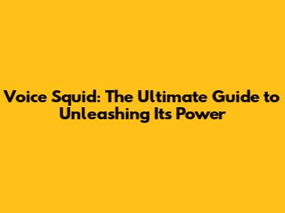 Voice Squid: The Ultimate Guide To Unleashing Its Power