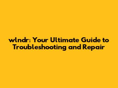 Wlndr: Your Ultimate Guide To Troubleshooting And Repair